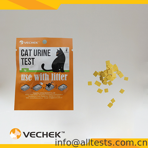 3. Após o gato urinar, esperar 5 minutos, observar a mudança de cor da área úmida da urina na areia do gato.