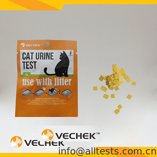 3. Após o gato urinar, esperar 5 minutos, observar a mudança de cor da área úmida da urina na areia do gato.