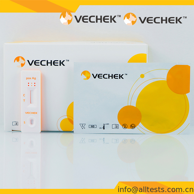The Pox Virus Antigen Rapid Test Cassette (Swab) is a lateral flow immunochromatographic assay for the qualitative detection of camelpox and cowpox virus antigen in pox’s scab or fluid sample. For veterinary use only.