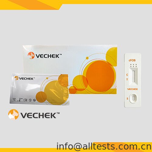 The Canine Fecal Occult Blood (FOB) Rapid Test Cassette (Feces) is a lateral flow immunochromatographic assay for the qualitative detection of Fecal Occult Blood antigen in canine feces at a cut off of 3ug/mL and the detection range is 3ug/mL-30000ug/mL.